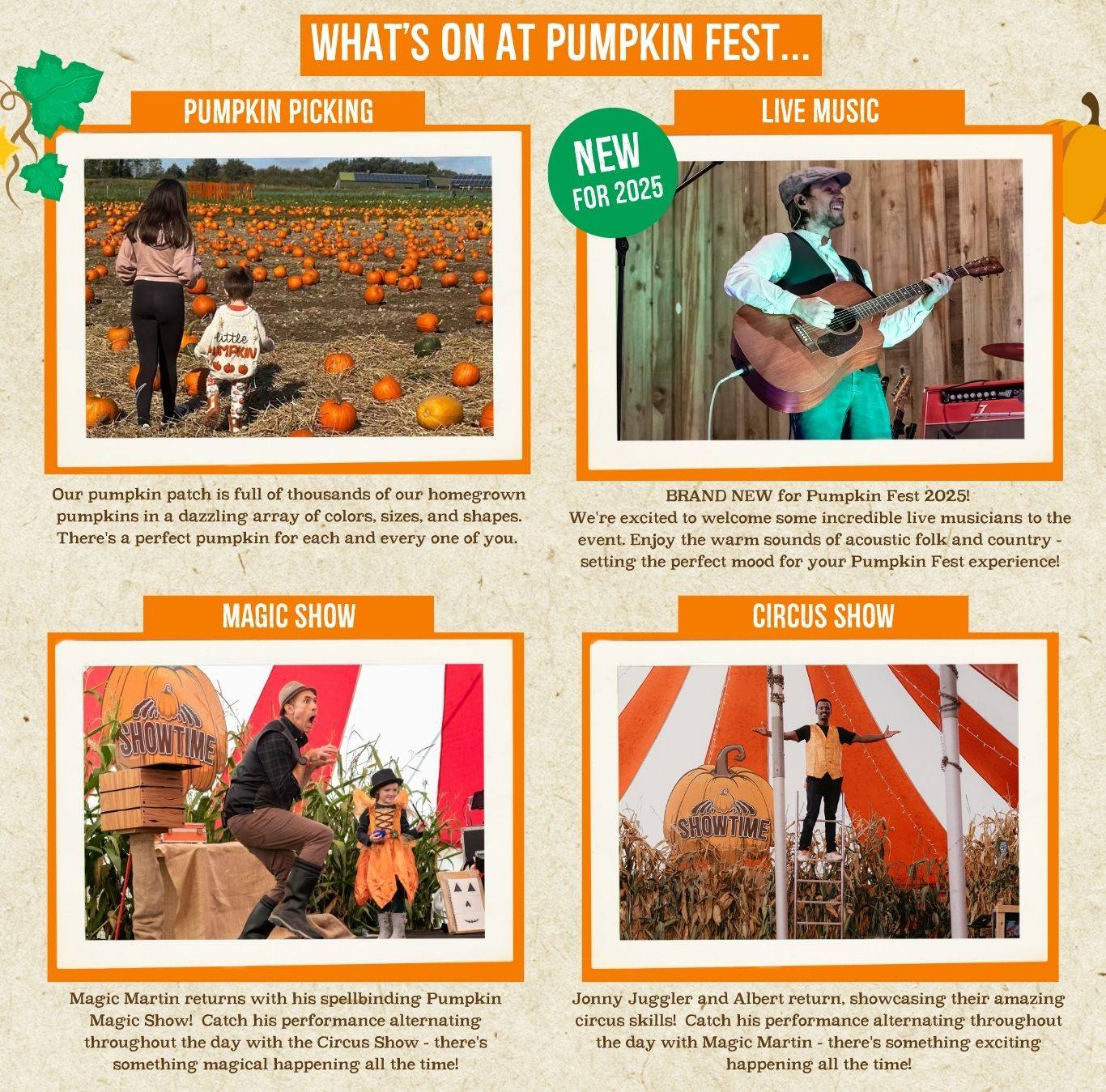Join us for Pumpkin Fest at Strawberry Fields in Lifton – the biggest and best pumpkin festival in Devon & Cornwall! Perfect for a fun-filled family day out, this October event features our spectacular pumpkin patch bursting with thousands of homegrown pumpkins ready for picking. Wander through the Creepy Carnival maize maze, hop on the barrel train, snap pics with our spectacular pumpkin displays, and tuck into delicious autumn treats. Don't forget to catch the magic show, circus show and live music! Whether you're here for pumpkin picking or just to soak up the festive vibes, Pumpkin Fest is the ultimate seasonal celebration for all ages!